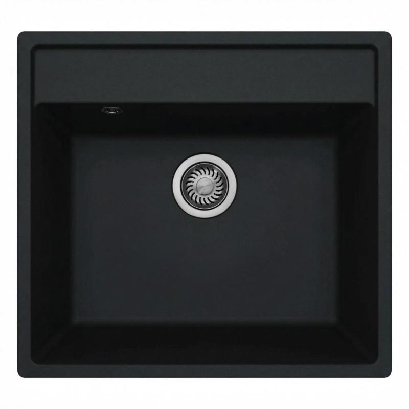 GraniteMy Bremen granite sink 53x50 cm black top-mount undermount and flush-mount with tap hole platform WITH STAINLESS STEEL PLUG