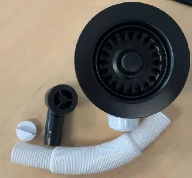 Granitemy sada košových zátok matně černá, odtoková sada dřezu včetně přepadu kulatého a obdélníkového 1208967256