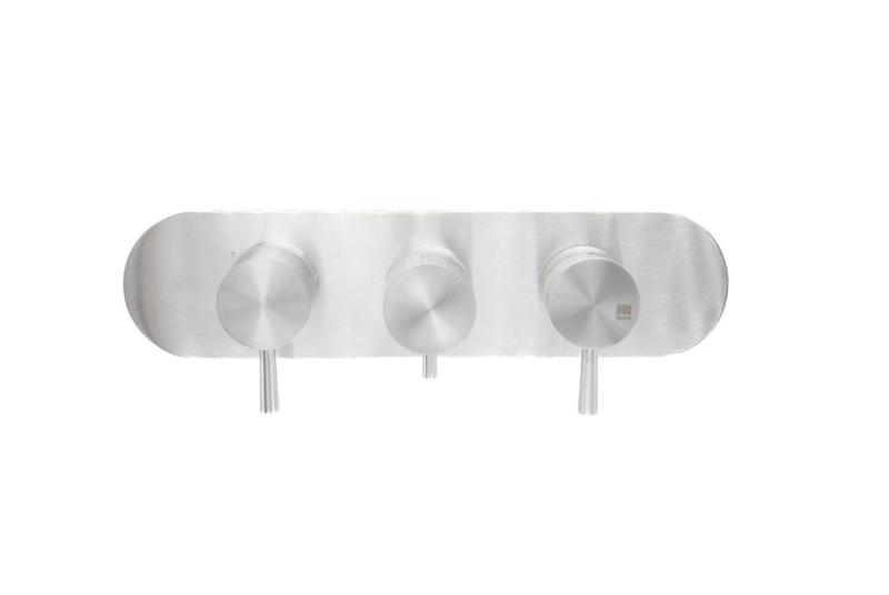 Dvěma samostatnými uzavíracími ventily můžete ovládat připojené výstupy vody nezávisle na sobě, například hlavní sprchu a ruční sprchu. To nabízí optimální flexibilitu a kontrolu nad komfortem a spotřebou vody. Ovládání se provádí pomocí elegantních páček, zatímco čtvercová krycí rozeta o rozměrech 80 x 80 mm zajišťuje elegantní, moderní povrchovou úpravu stěny.